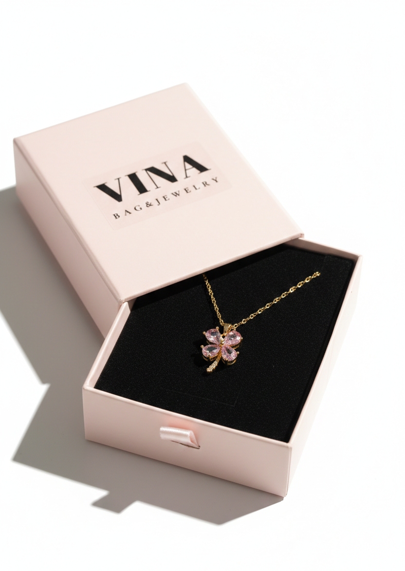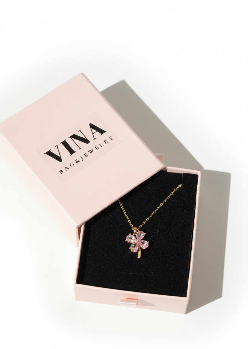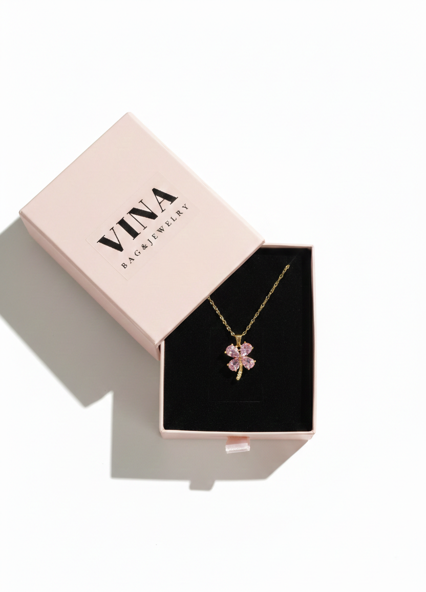 Işıltınızı Pembe Zarafetle Tamamlayın! Vina Jewelry koleksiyonunun bu özel parçası, enerjinizi yükseltecek pembe zirkon taşları ve şansın sembolü yonca figürüyle tasarlandı. Hem modern hem de romantik bir dokunuş arayan kadınlar için ideal bir seçim.